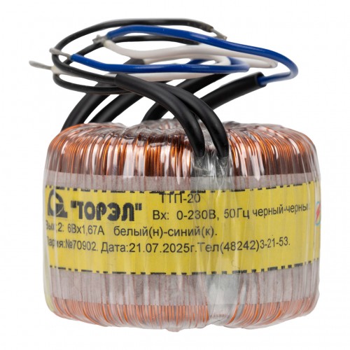 - Модель:Тороидальный трансформатор ТОРЭЛ ТТП-20 230В 2х6В 1,67 А