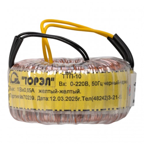 - Модель:Тороидальный трансформатор ТОРЭЛ ТТП-10 220В 15В 0,65 А