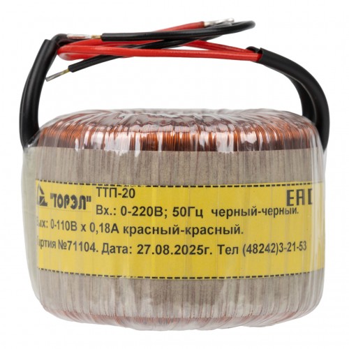 - Модель:Тороидальный трансформатор ТОРЭЛ ТТП-20 220В 110В 0,18 А