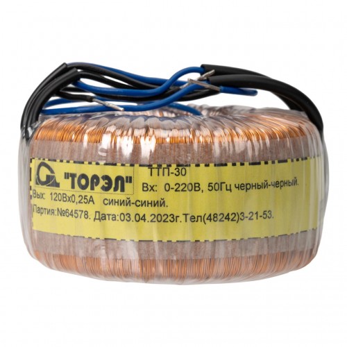 - Модель:Тороидальный трансформатор ТОРЭЛ ТТП-30 220В 120В 0,25 А
