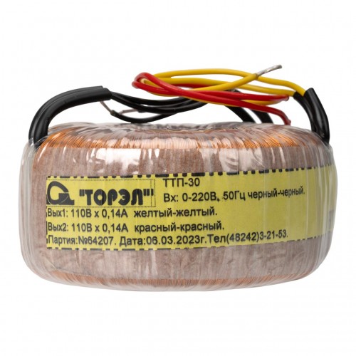 - Модель:Тороидальный трансформатор ТОРЭЛ ТТП-30 220В 2х110В 0,14 А