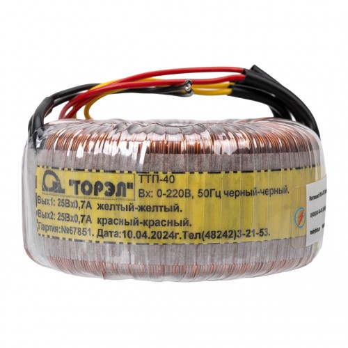 - Модель:Тороидальный трансформатор ТОРЭЛ ТТП-40 220В 2х25В 0,7 А
