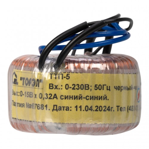 - Модель:Тороидальный трансформатор ТОРЭЛ ТТП-5 230В 15В 0,32 А