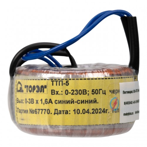 - Модель:Тороидальный трансформатор ТОРЭЛ ТТП-5 230В 3В 1,6 А