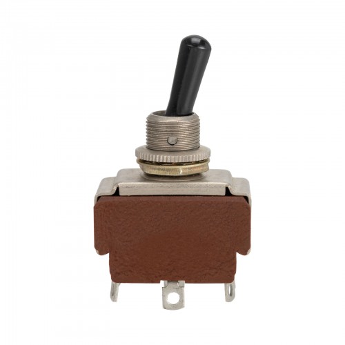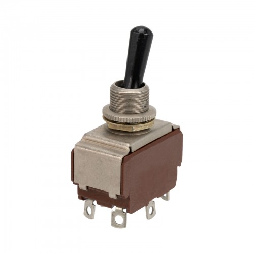 Внутри отечественного тумблера находятся контакты, которые соединяются или разъединяются в зависимости от положения рычажка. Двухполюсный двухпозиционный тумблер имеет шесть контактов, два общих по одному на каждый полюс и по два контакта для каждого положения. Когда рычажок находится в одном положении, общие контакты соединяются с одной парой контактов, а когда рычажок переводится в другое положение, общие контакты соединяются с другой парой контактов.